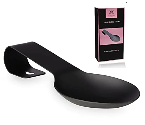 - SPOON REST DIMENSIONS – 9.65in X 3.7in tall. The matte black kitchen utensil holder is made of high quality powder coated Stainless Steel. Easy to clean by hand or dishwasher.