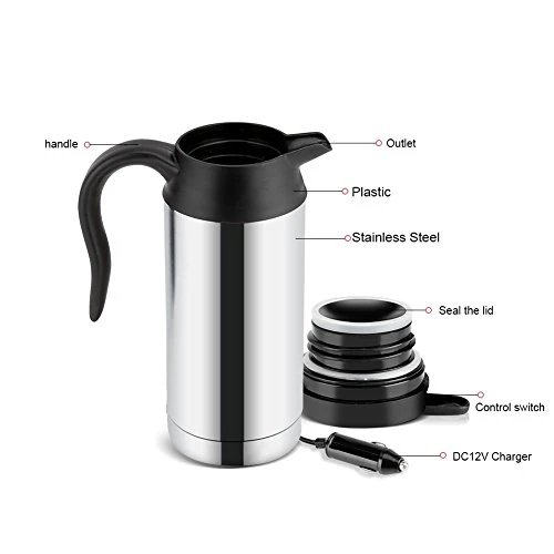 - AUTO-SENSING: Standard 12v car power plug, built-in fuse, external power indicator, safety design, easy to use. The indicator light turns red when working, and it turns green when the work is completed. When the water temperature reaches 100℃, it will automatically cut off the power.