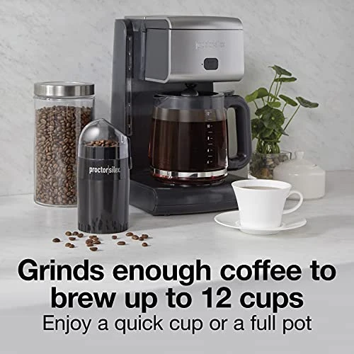 Proctor Silex Fresh Grind 4oz Electric Coffee Grinder For Beans, Spices And More, Retractable Cord, Stainless Steel Blades, Black