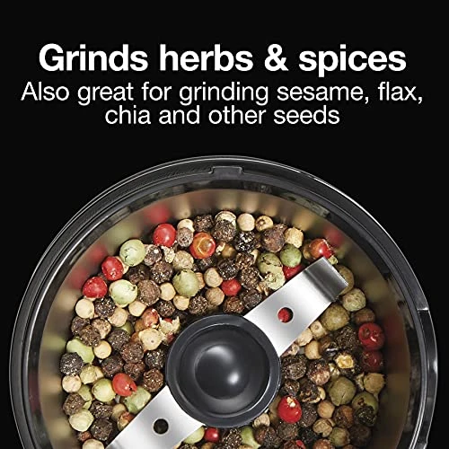 - Stainless Steel Blades: Durable stainless steel blades grind coffee beans and spices with ease