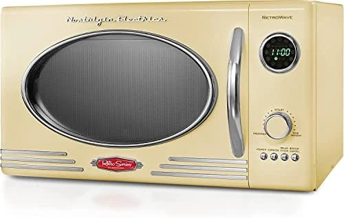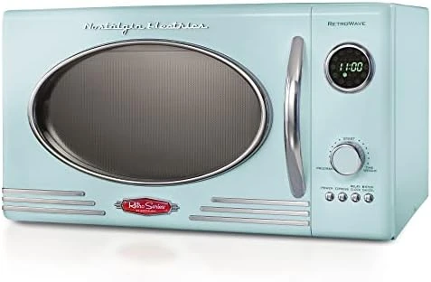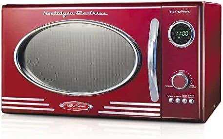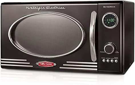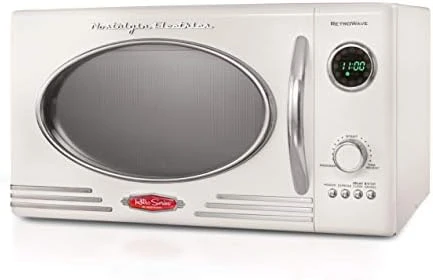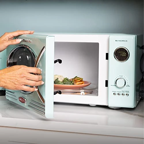 - RETRO ACCENTS: A sleek chrome door handle, control panel and accents add fun and flair to this unique retro-styled appliance