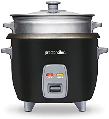 - 2-IN-1 STEAMER BASKET & MORE: The steamer basket is also a colander for rinsing vegetables, or use it to steam food as rice cooks. The cooker also includes a rice measuring cup and a spatula that neatly stores in the handle.
