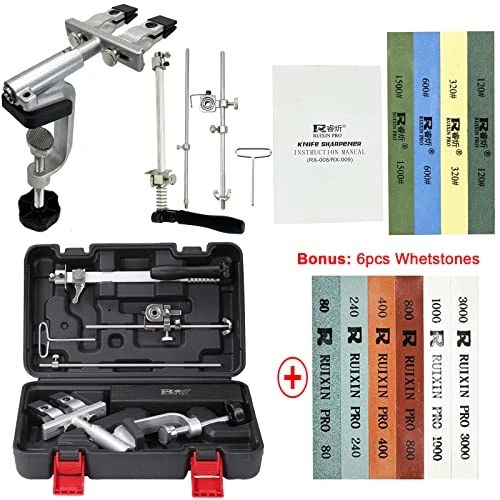 - Equipped with 10 Premium Quality Water Stones: This Edge Sharpener Pro RX-009 Knife Sharpener Kit comes with high quality whetstone without base (80#,120#, 240#, 320#, 400#, 600#, 800#, 1000#, 1500#, 3000#), a instruction manual & retail box. The smaller Grit, the rougher surface, suitable for repairing a wide range of knives and tools, restoring Old/New knives. The higher Grit, the smoother surface, can help to fine grind your knife and polish