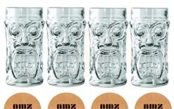 - Made of thick, crystal clear glass. Novelty Glasses. Features a whimsical and fun Screaming Tiki Design embossed into glass on both sides of the mug with exceptional clarity;