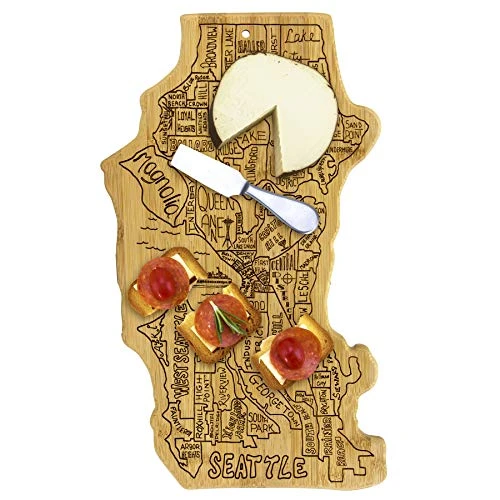 - Fun, whimsical laser-engraved artwork calls out all the unique neighborhoods that make up Seattle: Pike Place to Capitol Hill, Sodo to South Park, Harbor Island to Queen Anne and much more; board measures 9″ x 15″