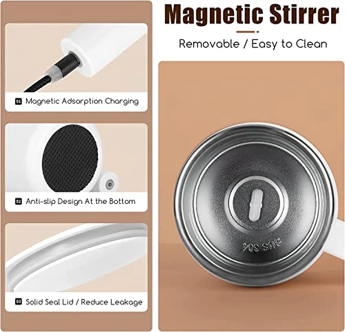 - 【Safety & Reliable】—Main material: ABS (cup body)+304 stainless steel (inner tank)+PP (cup cover, magnetic stirring core).The double-layer design of the cup body will not be hot when pouring boiling water into the cup.Solid lid also reduces any spillage