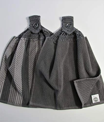 Set Of 2 Gray Doubled Chevron Design Hanging Kitchen Towels With Gray Cotton Crochet Top – Best Quality