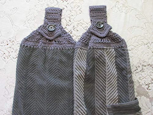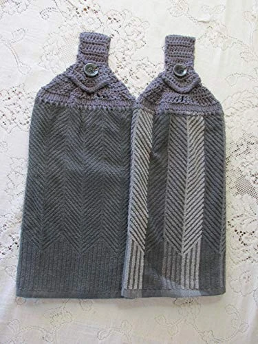 This listing is for a set of 2 Coordinating Gray Chevron Design towel with Gray Cotton Crochet Top.
