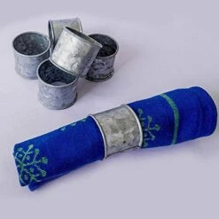 Galvanized Design Rustic Style Metal Napkin Ring For Dinning Table Parties Everyday, Set Of 6