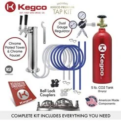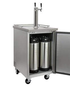 Kegco K199B-2P Kegerator Two Keg Beer Cooler – Premium Double Faucet D System Kit – Black Door