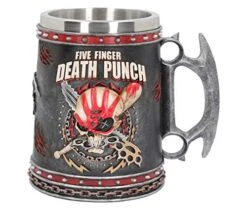 NEMESIS NOW B4654N9 Five Finger Death Punch Tankard 15cm, Resin W/Stainless Steel Insert, Black
