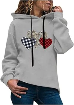 VODMXYGG Women Casual Fashion Long Sleeve Pullover Loose Printed Hooded Sweater Jacket Blouse Top