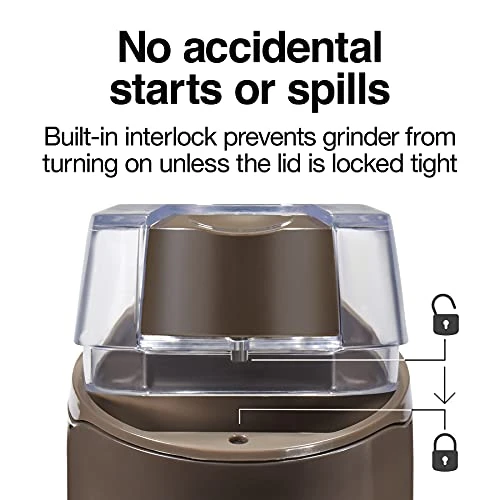 - NO ACCIDENTAL STARTS OR SPILLS: The built-in interlock prevents the coffee bean grinder from turning on when the safety on/off button is pressed unless the lid is locked securely in place.