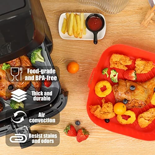 - 【Food Grade&Dishwasher Safe】The silicone pot is made of durable food-grade silicone with built-in handles, oven safe and heat resistant up to 428 Fahrenheit. It helps with clean up and dishwasher safe! No sticky mess to the air fryer pan. No impact on food flavor or air circulation, no worries.