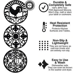 - ✅ DECORATIVE & ELEGANT DESIGN – These kitchen accessories come in a 3-set Fleur de Lis design. It’s an ancient symbol that has long been associated with French royalty. The flat trivet has a delicate and elegant finish, entirely of silicone and is made to mimic vintage cast iron trivets to give that classic touch to your kitchen. Use it simply as a regular trivet or to add an unexpected bit of whimsy to your kitchen.