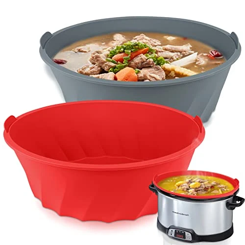 - 【Slow Cooker Liners】The handle designed with heat-resistant silicone material makes it easy for your to take out the food at any time without worrying about burning your hands. 2 different color silicone crockpot liner reusable. You can use the crockpot liners interchangeably to save cooking time.