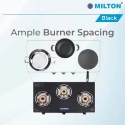 Ilton Premium 3 Burner Glass Top (Black) Gas Stove With MS Frame & Brass Burners (ISI Certified)