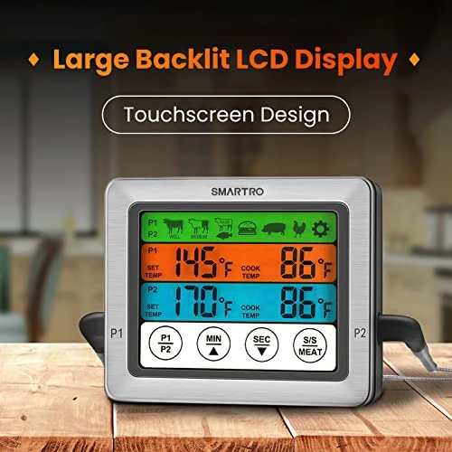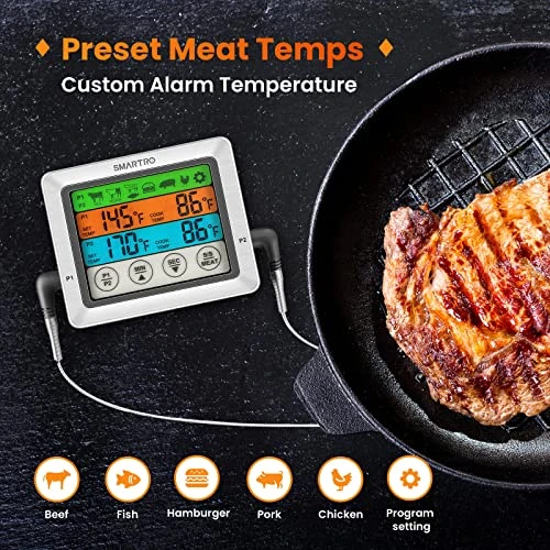 - 🌟【SMARTRO ST54 BBQ THERMOMETER PACKAGE CONTENTS】1 x Digital Food Cooking Thermometer, 2 x Food Grade IPX7 Waterproof Probes , 1 x Probe Clips Holder, 1x ST54 Digital Thermometer Manual.