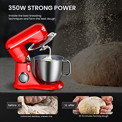 - 🥞【24/7 KICHOT ONLINE SUPPORT】We are confident in the quality of KICHOT stand mixers. Package includes: mixer machine, aluminum dough hook, stainless steel wire whip, alumium flat beater, 4.8-quart stainless steel bowl, splash guard with pouring chute, egg white separator and silicone spatula, free recipe &user manual. If you have any questions, well-pleasing solution provided.