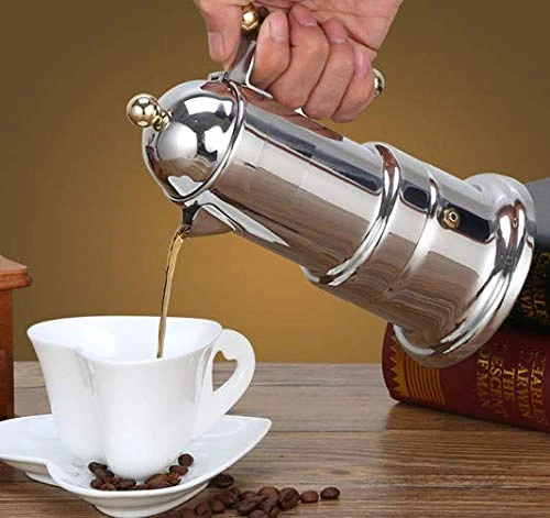 - 【Good Stainless Steel】 The coffee maker is made of 304 stainless steel for food safety, which is safe and healthy, has a long shelf life and rapid heating. Excellent anticorrosive and antioxidant properties.