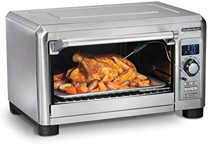 - COOK FAMILY-SIZE MEALS WITH THE EXTRA-LARGE 1 CU. FT. CAPACITY: The large countertop oven lets you cook a 12″ pizza, 6 lb. chicken, 6 slices of toast or a 9″ x 13″ pan. It also has 3 rack positions to accommodate a variety of cooking needs.