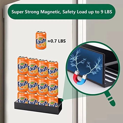 - 🧲【Super Magnetic】-Easy to install, no drilling or assembly required. This magnetic rack has a super strong magnet on the back, which provides a max load bearing of up to 6.6 lb. Just attach it to the side of the fridge, it won’t slip down with time.