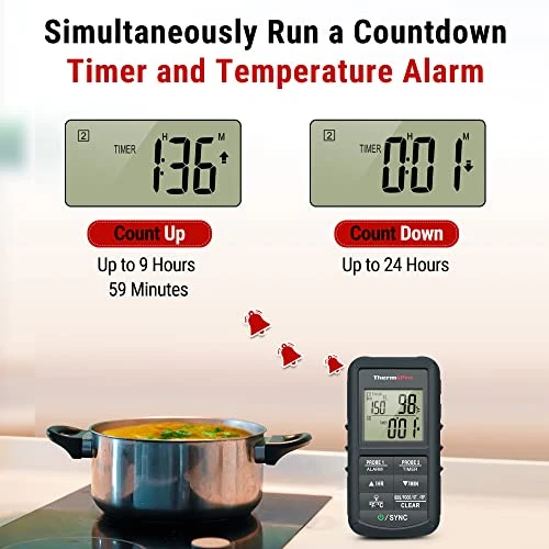 - Convenient Kitchen Timer: Grilling thermometer features countdown & count up timer which can be used simultaneously with the temperature monitoring functions, helps you keep track of your entire meal, let you Cook like a pro every time