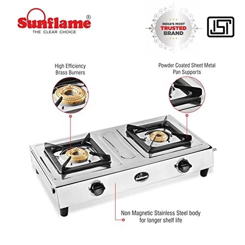 Unflame Shakti Stainless Steel 2 Burner Gas Stove