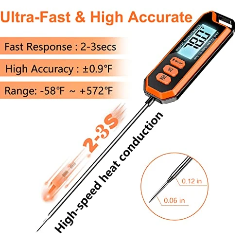 - [ Fast Response & HIGH ACCURATE ] 2-3 seconds response time with high accuracy ±0.9℉/±1℃. Wide temperature range from -58℉ ~ +572℉ with 0.1℉ increments.