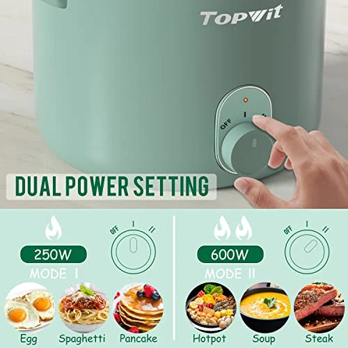 - 【Ideal for Gift】 Topwit electric pot has a mini size, unique green color and stylish style. With a wide range of cooking usage, this electric hot pot can meet your different cooking needs. It’s an ideal gift for your families and friends who love cooking.
