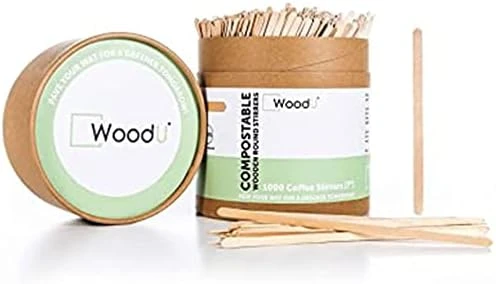 WoodU Disposable Coffee Stir Sticks 7″- Sturdy Round End Compostable And Biodegradable Brich Wood Tea Stirrers- 100% Ecofriendly Wooden Stirring Sticks For Hot Drinks